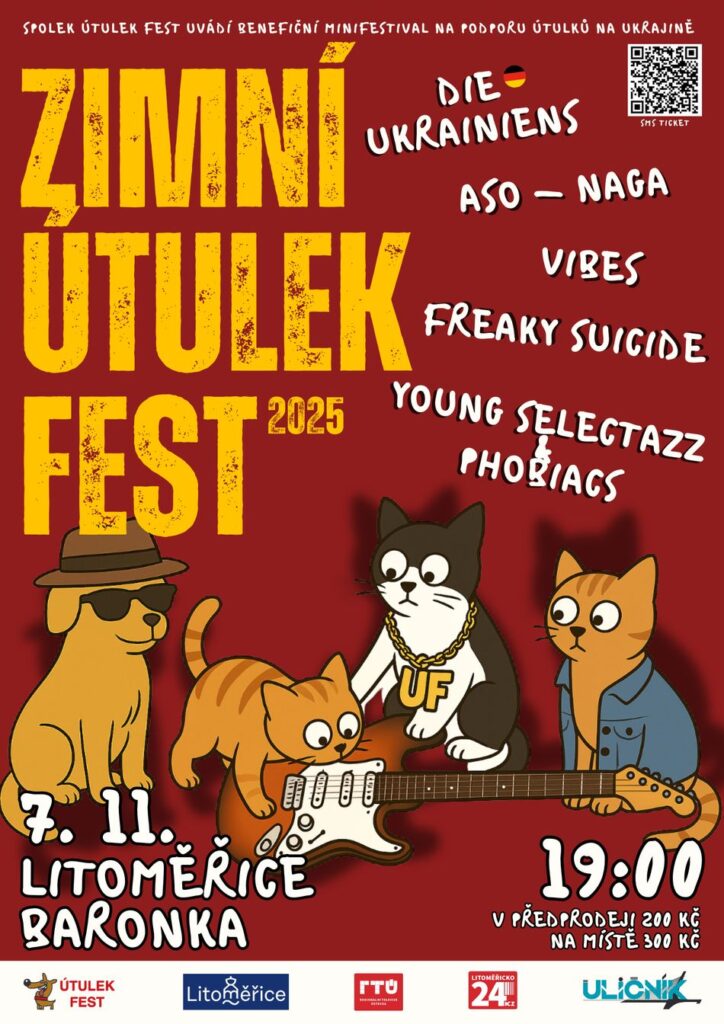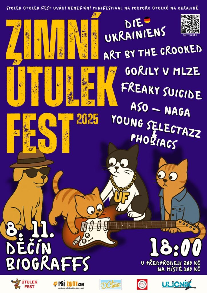 Útulek fest navíc nelení ani v podzimním období. Chystá menší koncerty, které tentokrát podpoří zvířata zasažená válkou na Ukrajině. Zahrají kapely Die Ukrainiens, ASO-NAGA, Vibes a další. >> 7/11 Litoměřice & 8/11 Děčín * PŘEDPRODEJ ZDE